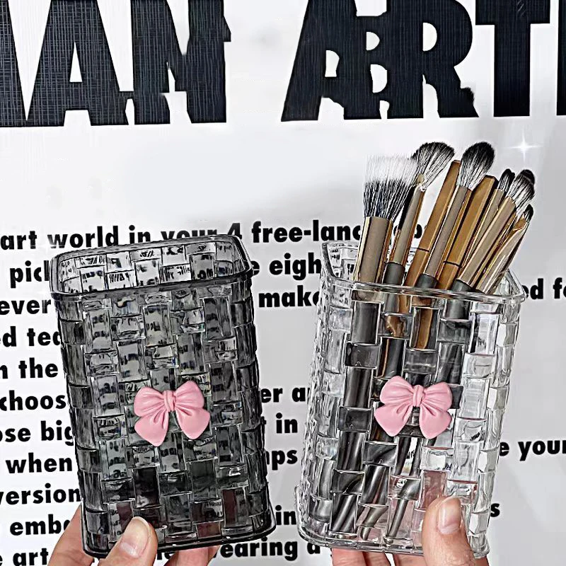 Desktop Pen Holder And Storage Box, Featuring A Bow Decoration And Storage Basket, Suitable For Storing Office Supplies